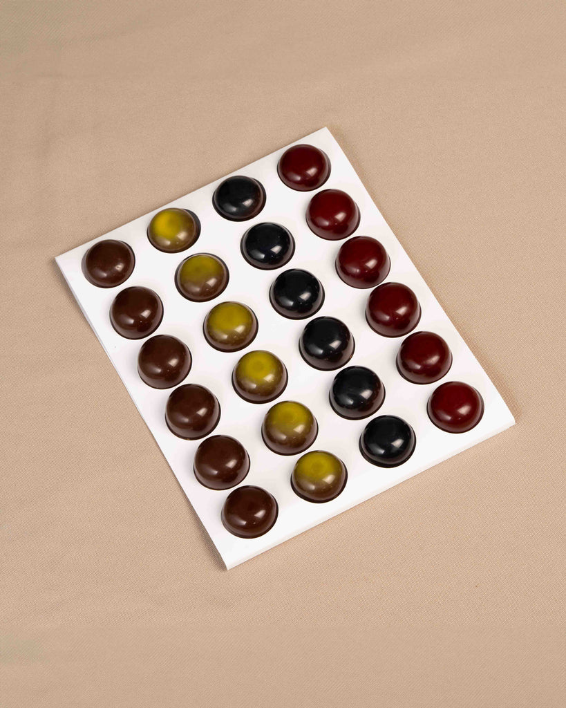 Assortment of 24 CHOCOLATES made with single-origin cocoa from Ecuador (Mache-Chindul Ecological Reserve). Includes 4 different flavors, created in collaboration with chef Ricard Martínez as a tribute to the culinary culture of this country and the unique characteristics of its cocoa.