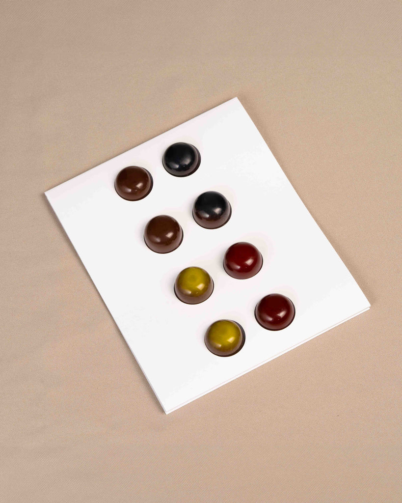 Assortment of 12 bonbons made with single origin cocoa from the DR Congo. Included are 4 different recipes specially designed to highlight the native flavors of cocoa.